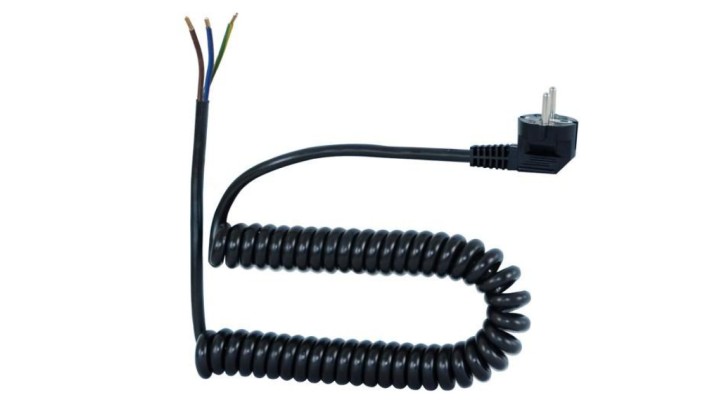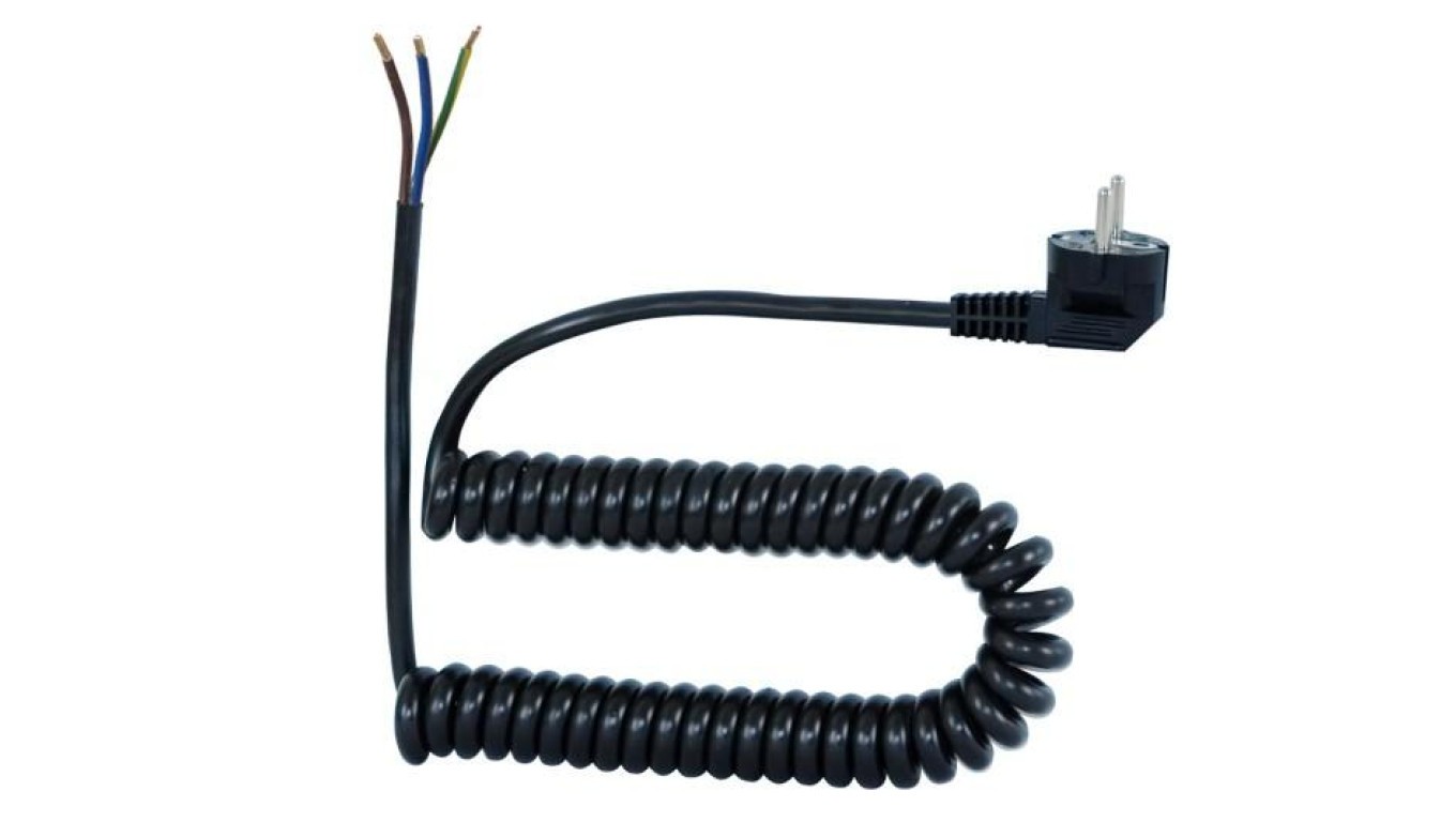 Przewód spiralny - wtyczka kątowa 05VVH8-F - 3x1mm2 - 10m - czarny