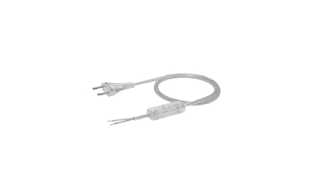 Przewód z wyłącznikiem z płaską wtyczką b/u H03VVH2-F 2x0,5 transparentny S-13W-0,5-2-0 /2m/