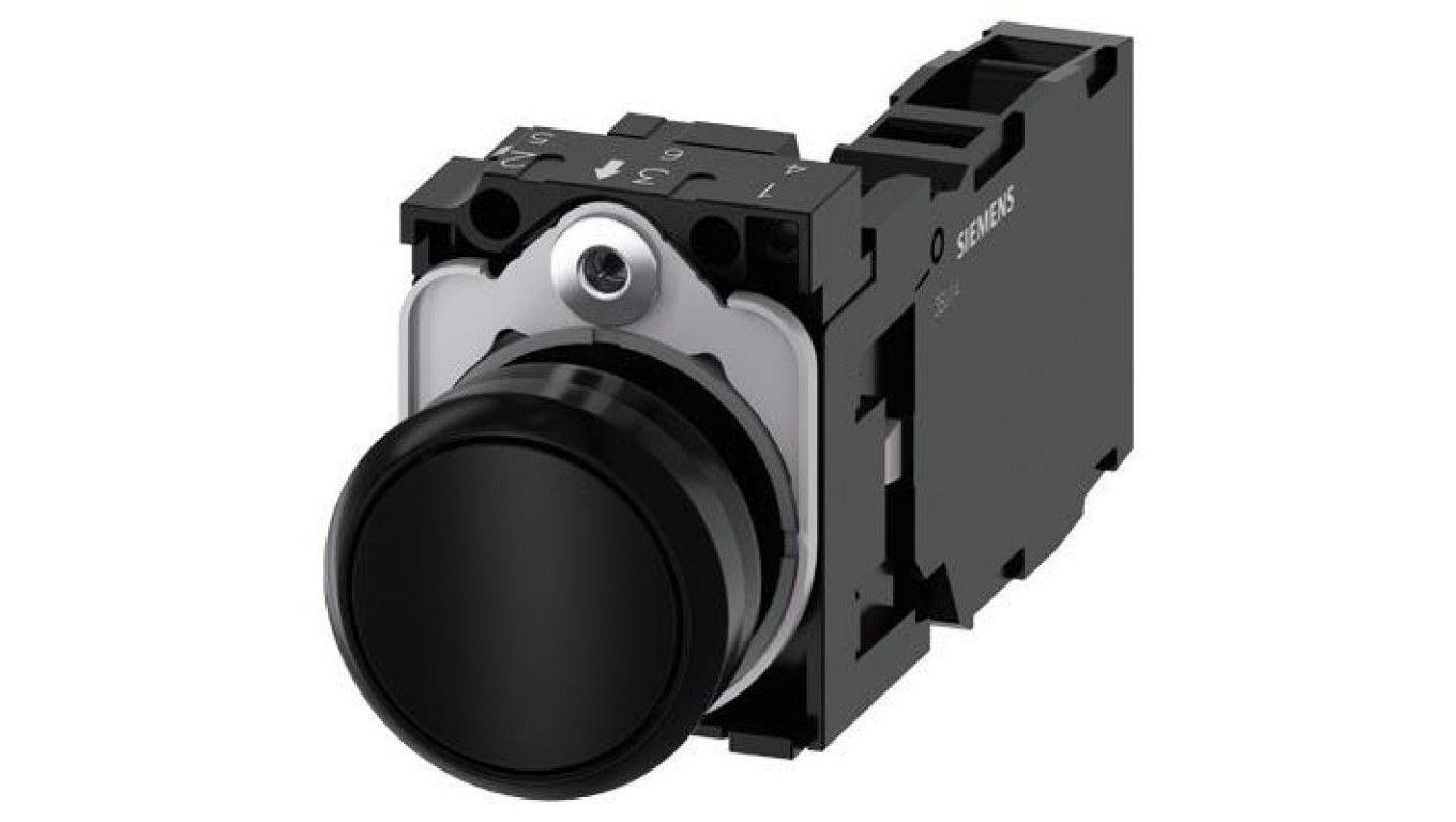 Przycisk, 22 mm, okrągły, plastikowy, czarny, przycisk, płaski, zestyk chwilowy, z uchwytem 1 NO + 1 NC 3SU1100-0AB10-1FA0