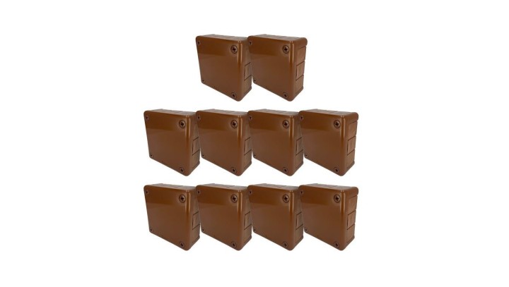 Puszka hermetyczna natynkowa 98x98x42mm 12-wlotowa, z dławikami gumowymi, IP55 zamknięcie na wkręty brązowa EDO 10szt