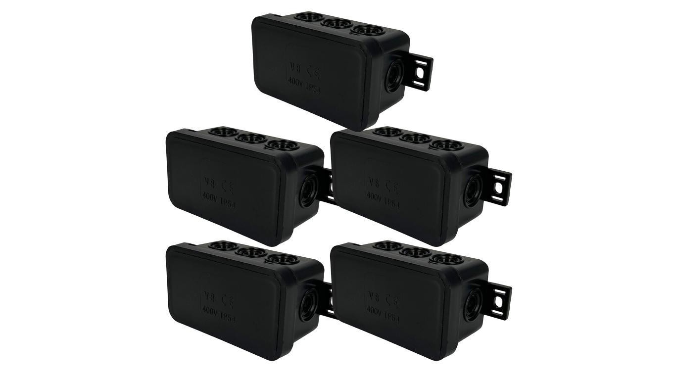Puszka hermetyczna natynkowa elastyczna 80x45x41mm 8-wlotowa, zamknięcie na klik IP54 czarna EDO 5 szt.