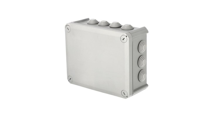 Puszka hermetyczna natynkowa z dławikami 190x150x75mm bezhalogenowa, odporna na UV, dekiel przykręcany IP66 szary