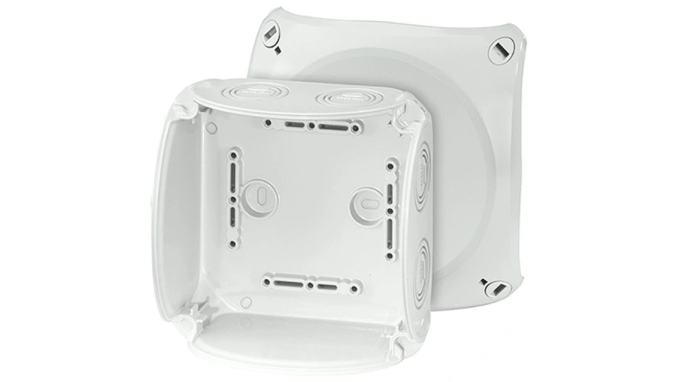 Puszka instalacyjna KF 0600 G natynkowa bez zacisków z linką łączącą pokrywę z podstawą 130x130x77mm hermetyczna IP66 szara HENS
