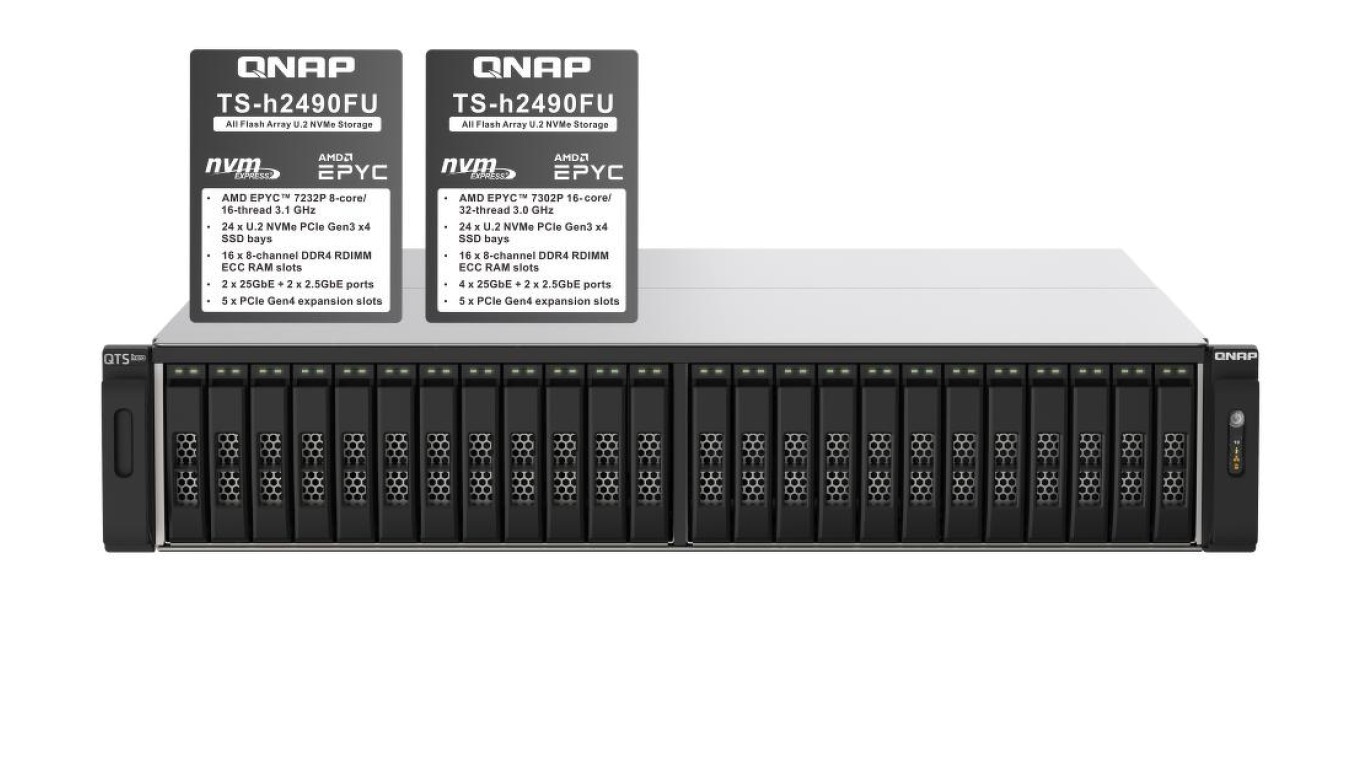 QNAP TS-h2490FU-7232P-64G 24-zatokowy all flash U.2 NVMe NAS, AMD Epyc, 64GB RAM, RP, RACK