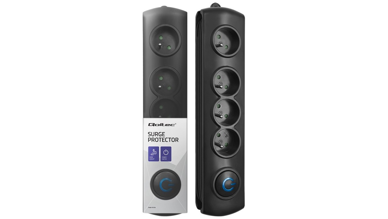Qoltec Listwa zasilająca antyprzepięciowa 4 gniazda 1.5m Czarna