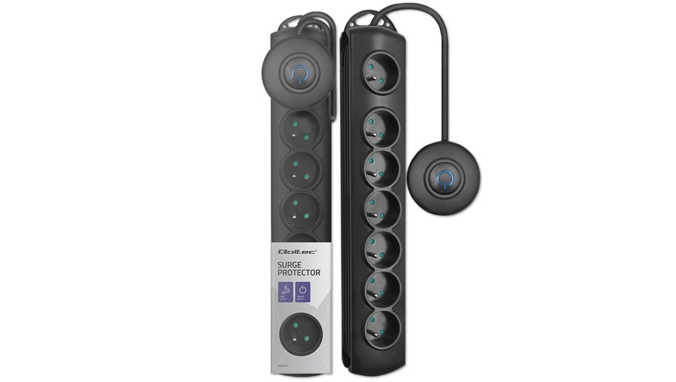 Qoltec Listwa zasilająca antyprzepięciowa wł. QS 7 gniazd 1.5m Czarna