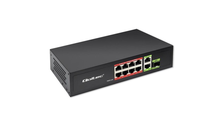 Qoltec Przełącznik sieciowy SWITCH FAST Ethernet PoE 8x RJ45 PoE 2x RJ45 Uplink 1x SFP 120W 1000 Mb