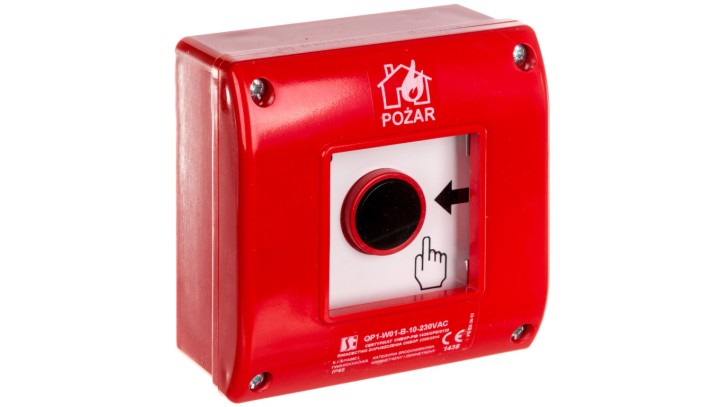 Ręczny ostrzegacz przeciwpożarowy natynkowy, styk 1Z+LED 230V AC OP1-W01-B10-230