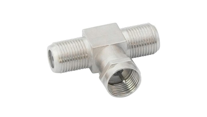 Redukcja 2gn.F/wt.F, trójnik 2gniazda F na wtyk F