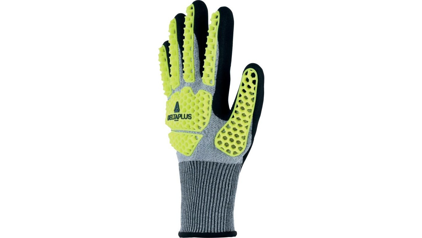 Rękawice dziane powlekane - powłoka - pianka nitrylowa - ścieg: 13, kolor Żółto-szaro-czarny, rozmiar: 9, VV909JA09