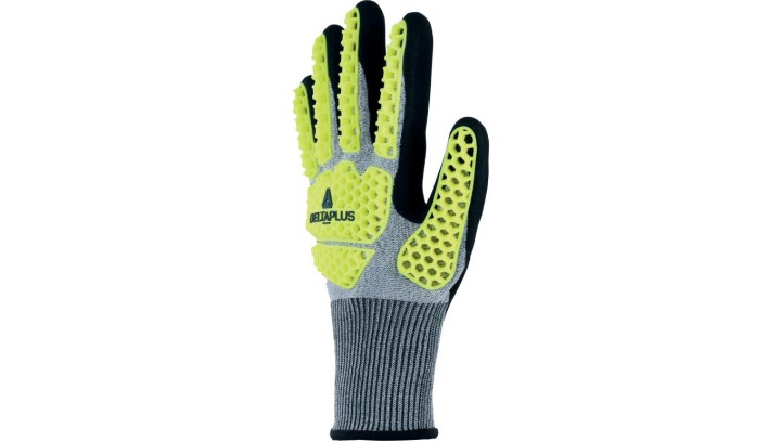 Rękawice dziane powlekane - powłoka - pianka nitrylowa - ścieg: 13, kolor Żółto-szaro-czarny, rozmiar: 8, VV909JA08