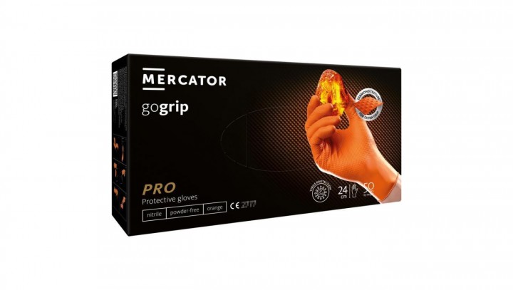 Rękawice robocze, ochronne nitrylowe rozmiar L pomarańczowy 50szt GoGrip Orange Mercator