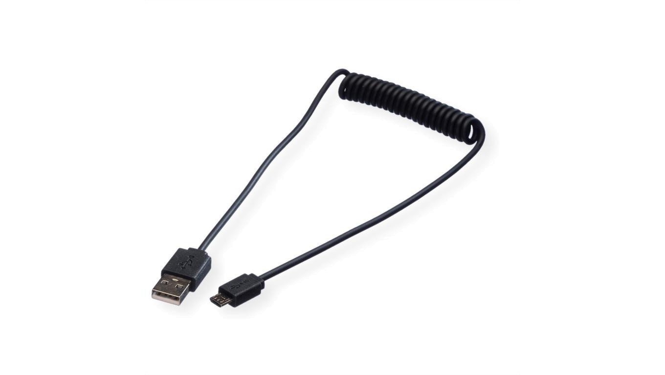 ROLINE USB 2.0 Spiraalkabel, A męski - Micro B męski, 1 m