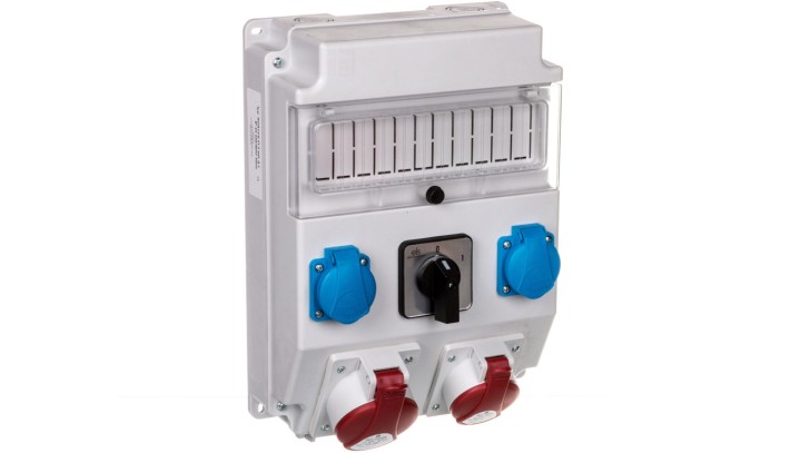 Rozdzielnica 1x32A 5P/ 1x16A 5P 2x250V okienko wyłącznik 0-1 IP54 ROS 11/X-21.2/0-1