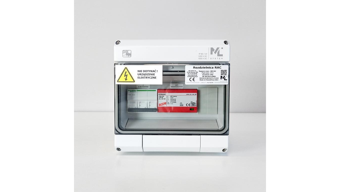 Rozdzielnica AC TYP43 - RAC43/3F/B25A/T1+T2/UV do 8-12,5kW - SCHNEIDER K60N-B25-3 / IP65 / 1000V AC / 1500V DC / ZEW.