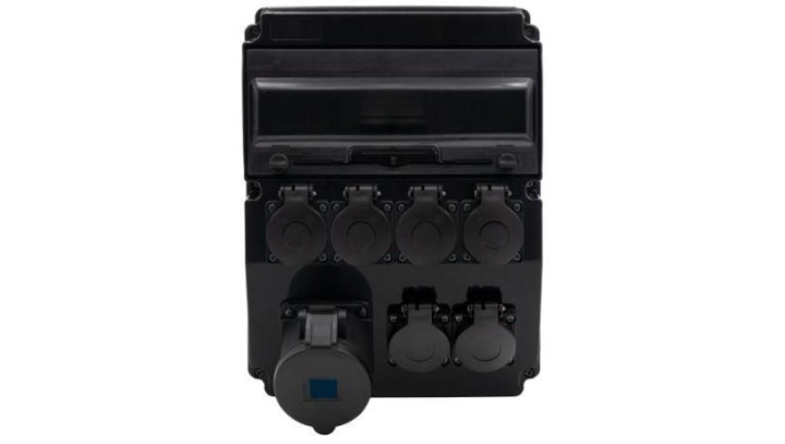 Rozdzielnica budowlana czarna (sceniczna) CAJA 12M SCENIC - gniazda proste 16A 3p, 6x230V /12 modułów/ F3.2906