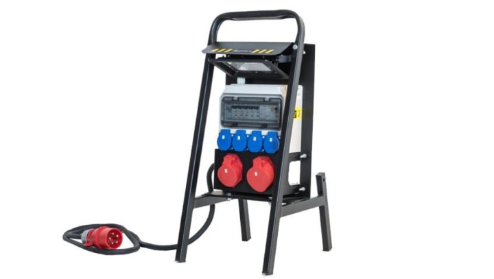 Rozdzielnica budowlana ERB32R4 z oświetleniem, na stojaku, IP54, gniazda: 2x CEE 32A, 2x CEE 16A, 4x GS 230V