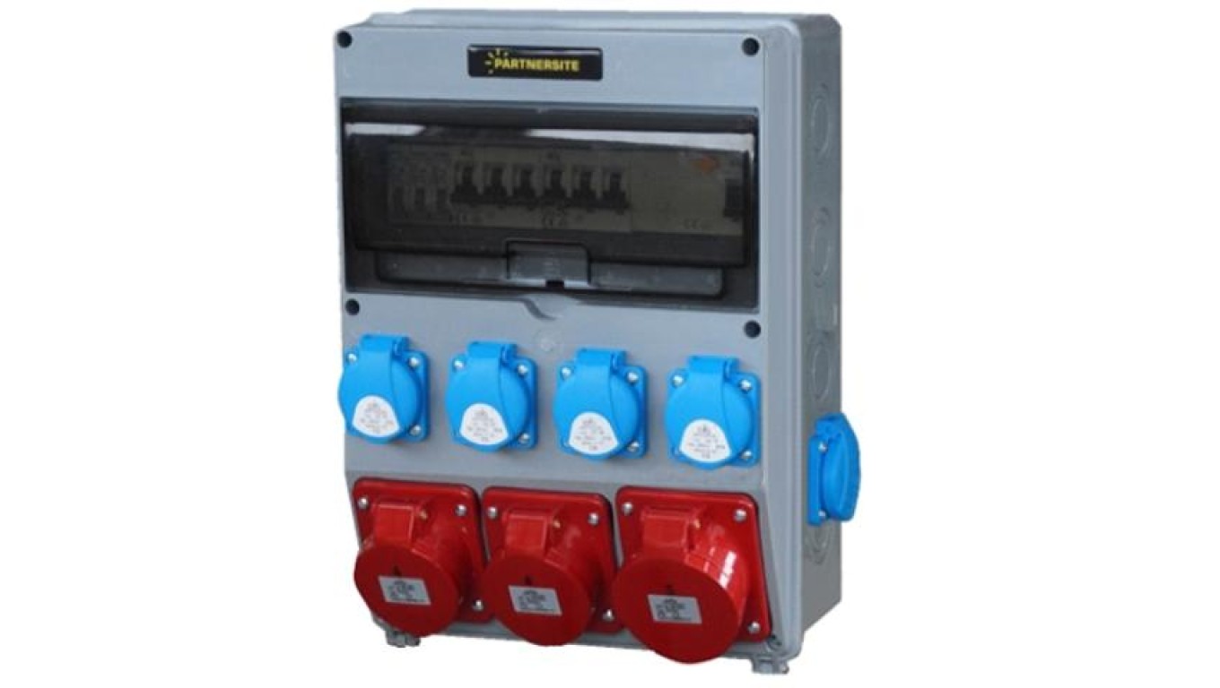 Rozdzielnica przemysłowa 63A, ERP63AB2, gniazda: 1x CEE 32A, 2x CEE 16A, 6x GS230V, do montażu na stałe, z zabezpieczeniami