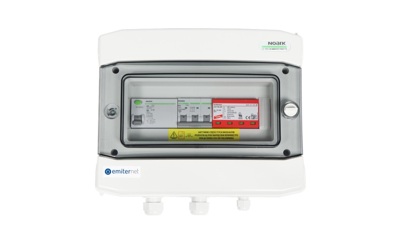 Rozdzielnica przył. hermetyczna EMITER z ogranicznikiem przepieć AC typ 1+2, 16A 3-F, różnic 40A/300mA, EM-269_AC