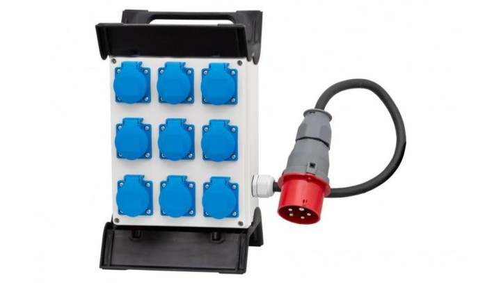 Rozdzielnica R-240 - gniazda 9x230V, przewód OW 5x2,5mm2-1,5m z wtyczką 16A 5p na stelażu plastikowym