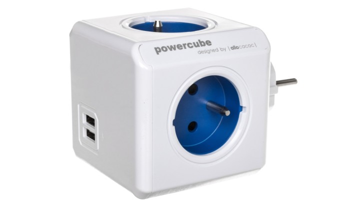 Rozgałęźnik PowerCube z 4-krotnym gniazdem E/FR i 2xUSB 5V 2,1A niebieski 2202/FROUPC