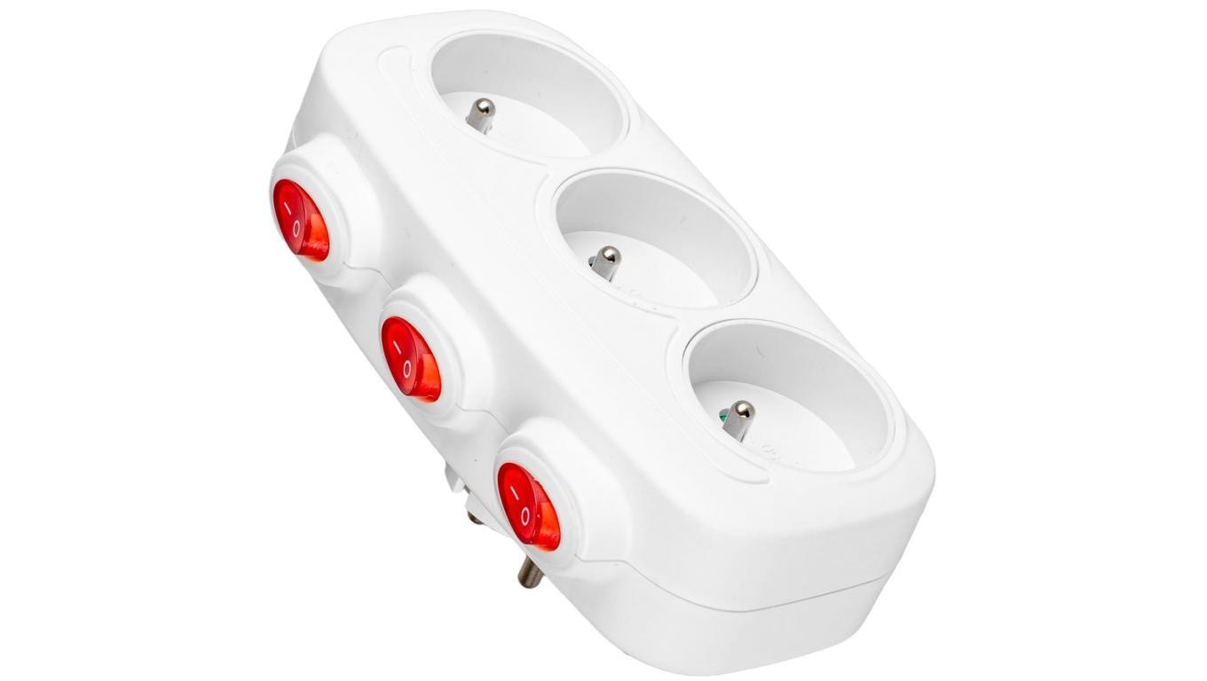 Rozgałęźnik sieciowy 3 gniazda z uziemieniem i wyłącznikami podłużny VA0275 VAYOX