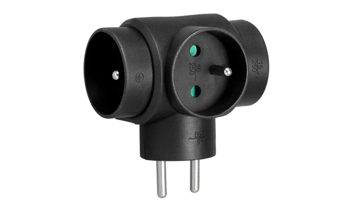 Rozgałęźnik sieciowy 3 gniazda z uziemieniem (T) czarny VA0276B VAYOX