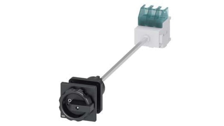 Rozłącznik główny 3P 32A 11.5kW AC23A 400V montaż na płycie z wałkiem pokrętło czarne otwór centralny 22.5 mm 3LD2244-0TK51
