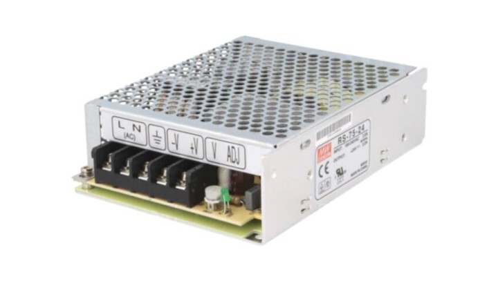 RS-75-24 Zasilacz impulsowy, do wbudowania,modułowy, 75W, 24VDC, 3,2A