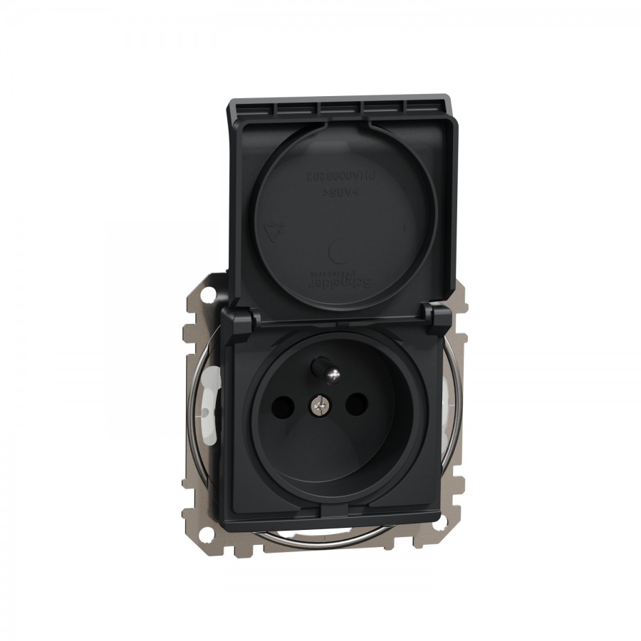 Sedna Design, Gniazdo 2P+PE z przesłonami IP44, czarny antracyt