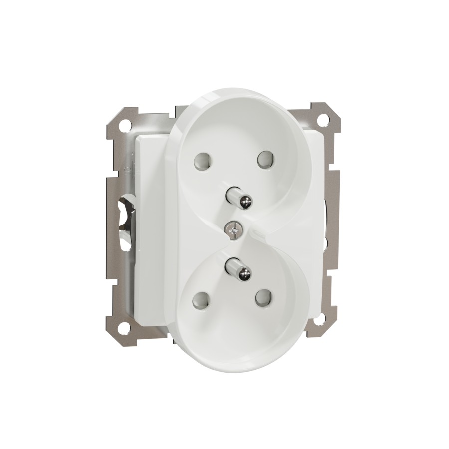Sedna Design, Gniazdo 2x2P+PE z przesłonami do systemu ramkowego, białe