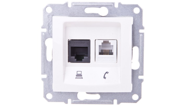 Sedna Gniazdo komputerowe podwójne RJ45+RJ11 kat. 6 UTP kremowe SDN5200123