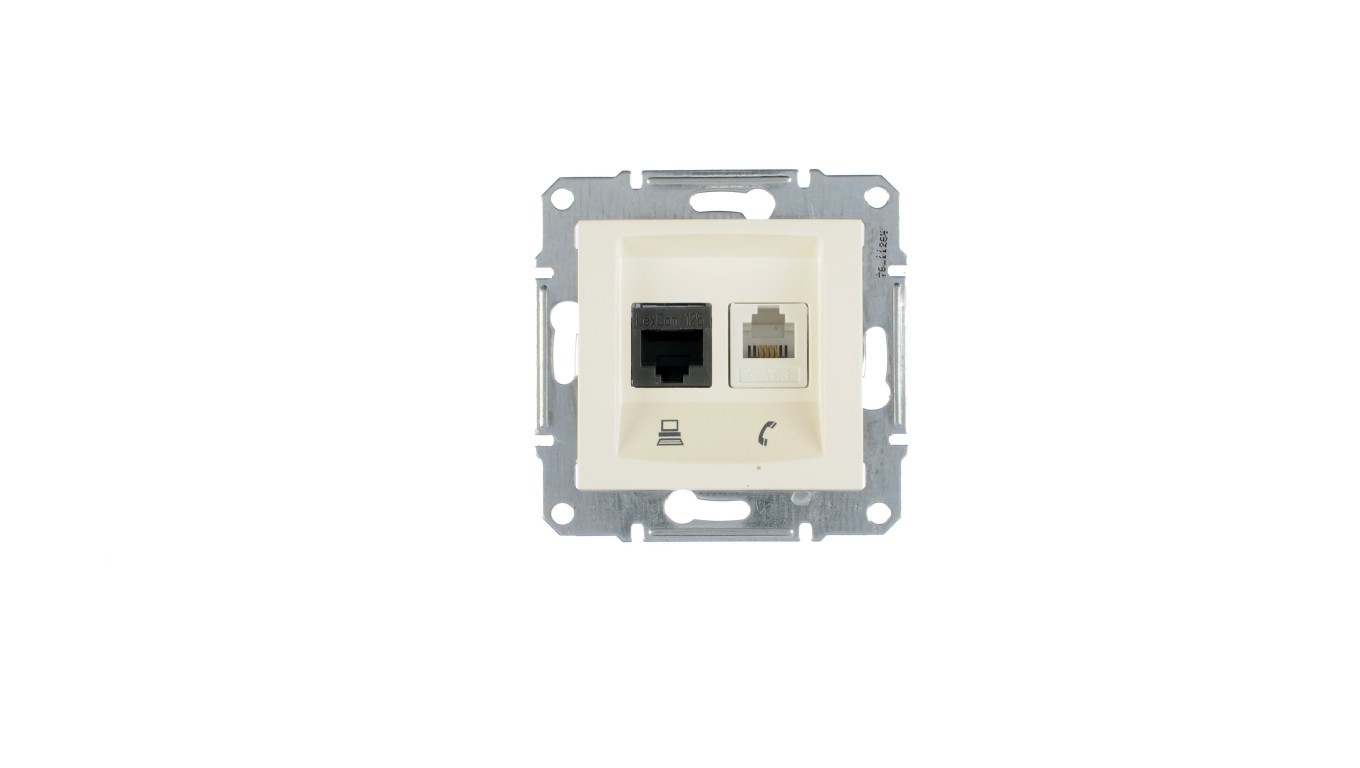 Sedna Gniazdo teleinformatyczne RJ11 RJ45 kat.5e UTP kremowe SDN5100123