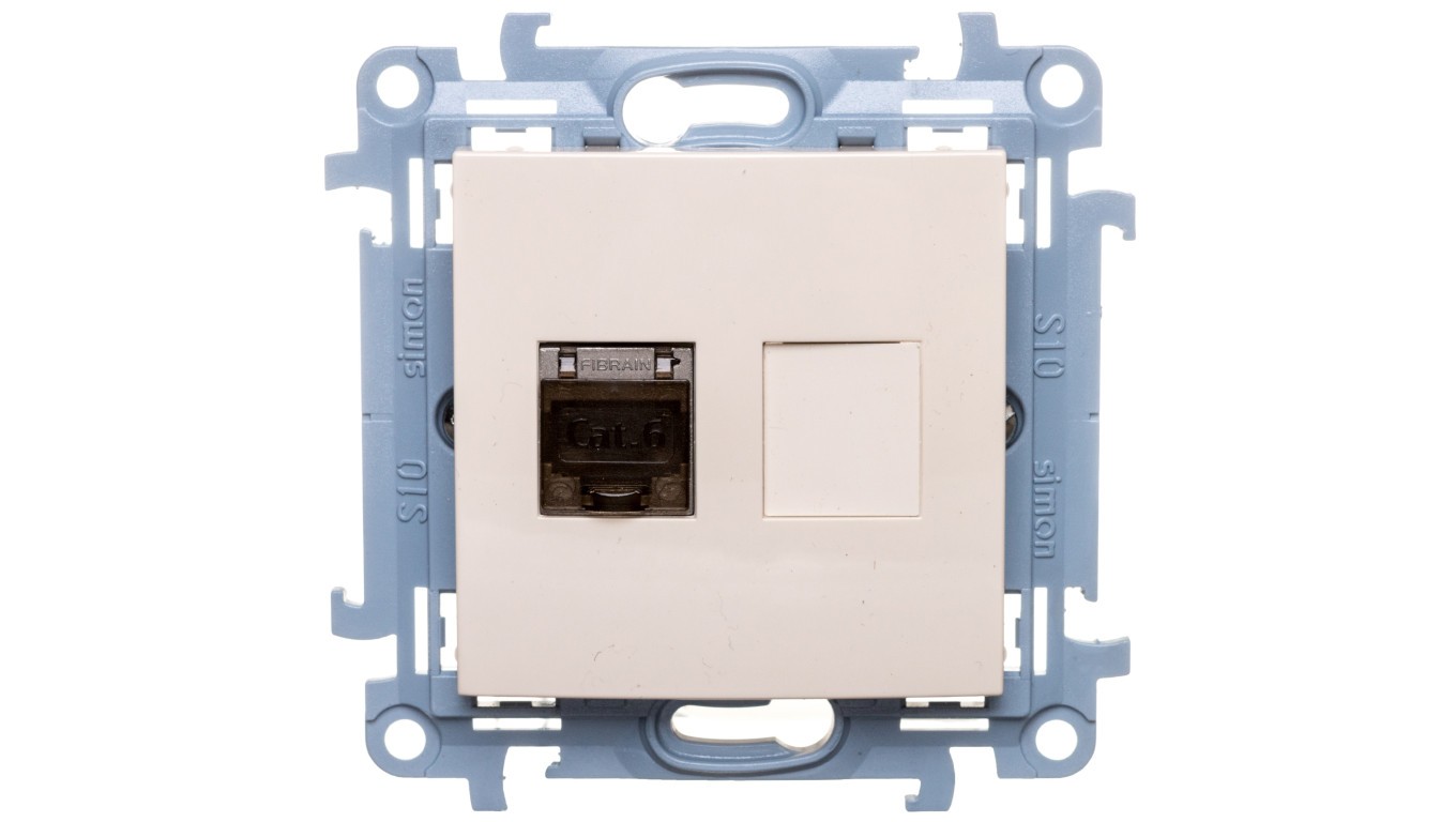 Simon 10 Gniazdo komputerowe pojedyncze RJ45 kat.6 ekranowane kremowy C61E.01/41