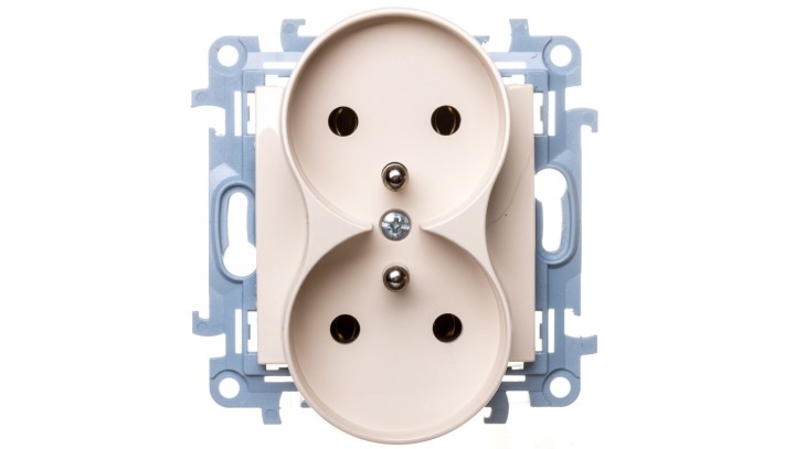 Simon 10 Gniazdo podwójne z/u kremowe 16A 250V IP20 CGZ2M.01/41
