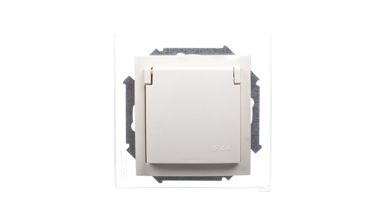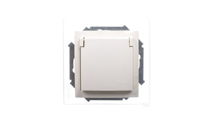 Simon 15 Gniazdo bryzgoszczelne z/u IP44 z klapką pełną beżowe 1591940-031
