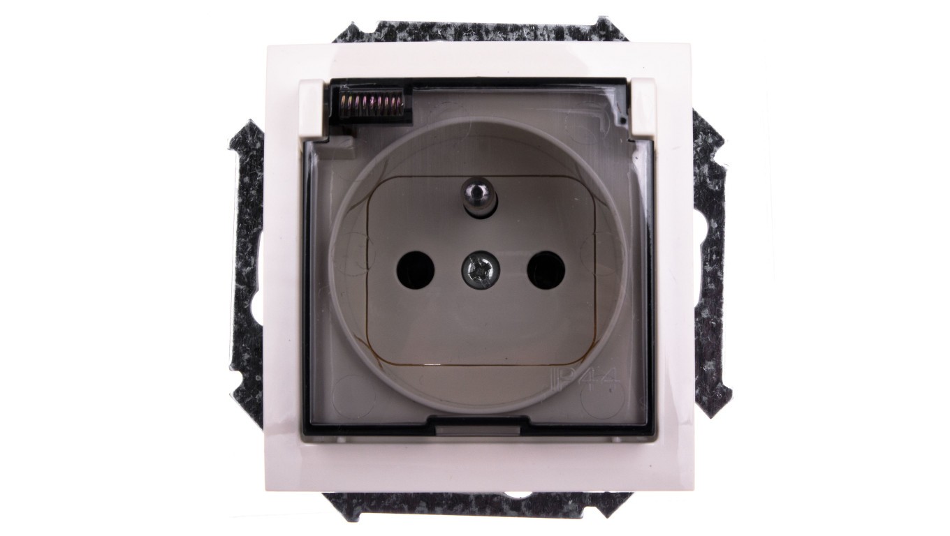 Simon 15 Gniazdo bryzgoszczelne z/u IP44 z klapką transparentną beżowe 1591940-031A