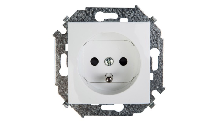 Simon 15 Gniazdo pojedyncze z/u 16A IP20 z przesłoną torów białe 1591418-030