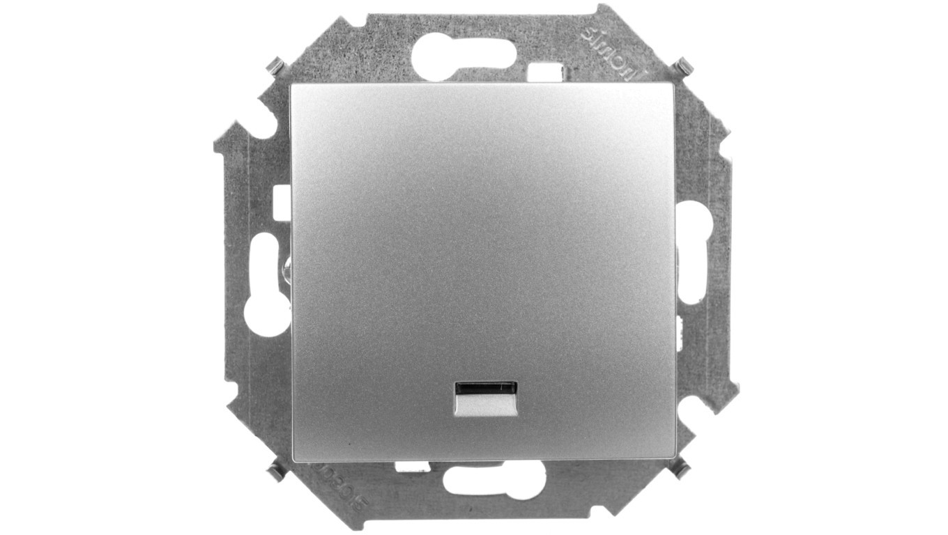Simon 15 Łącznik jednobiegunowy z podświetleniem 10AX, 250V aluminium (met.) 1591104-026