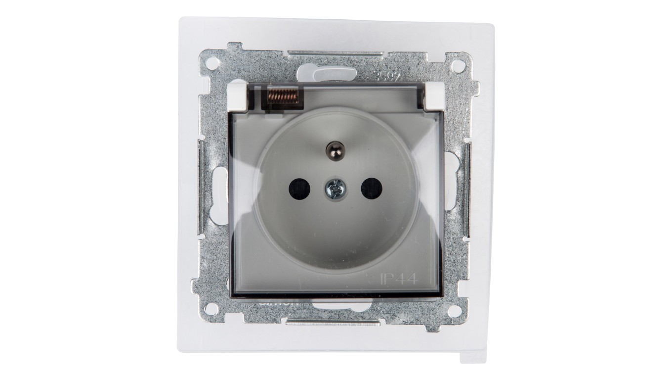 Simon 54 Gniazdo bryzgoszczelne z/u IP44 z klapką transparentną białe DGZ1BZ.01/11A