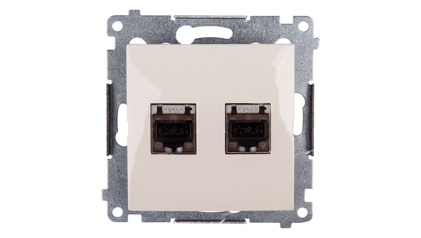 Simon 54 Gniazdo komputerowe podwójne 2xRJ45 kat.6 ekranowane z przesłoną kremowe D62E.01/41