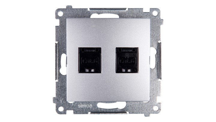Simon 54 Gniazdo komputerowe podwójne 2xRJ45 kat.6 z przesłoną srebrny mat D62.01/43