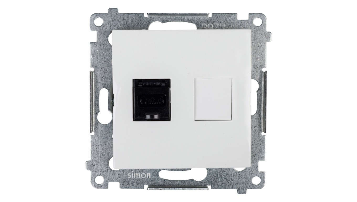 Simon 54 Gniazdo komputerowe pojedyncze RJ45 kat.6 z przesłoną białe D61.01/11