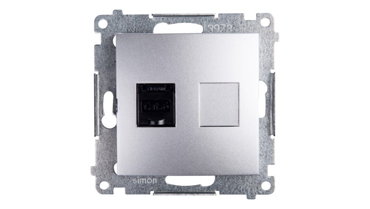 Simon 54 Gniazdo komputerowe pojedyncze RJ45 kat.6 z przesłoną srebrny mat D61.01/43