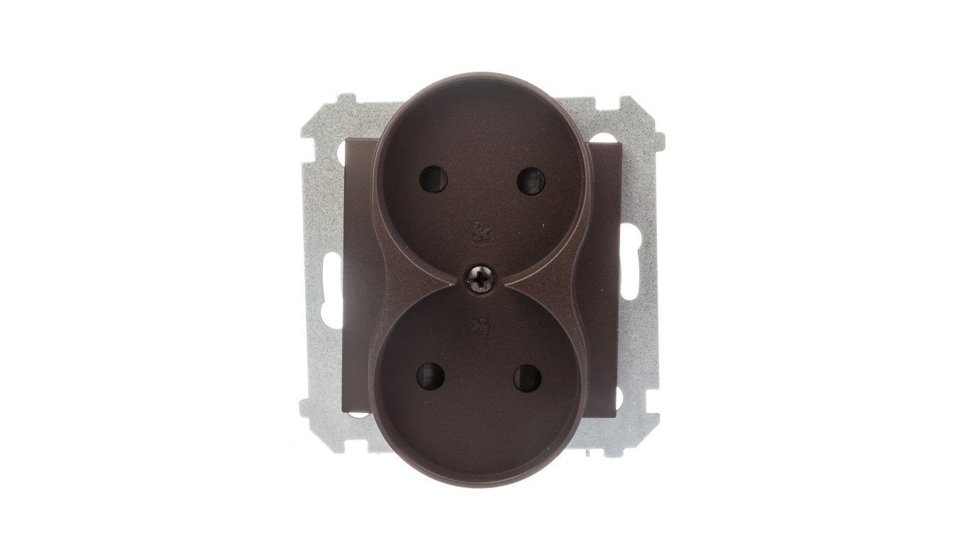 Simon 54 Gniazdo podwójne b/u 16A IP20 z przesłoną torów brąz mat DG2MZ.01/46