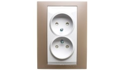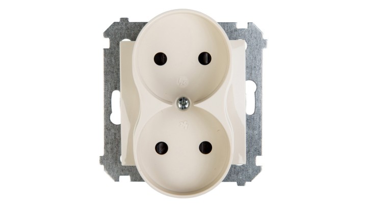 Simon 54 Gniazdo podwójne b/u 16A IP20 z przesłoną torów kremowe DG2MZ.01/41