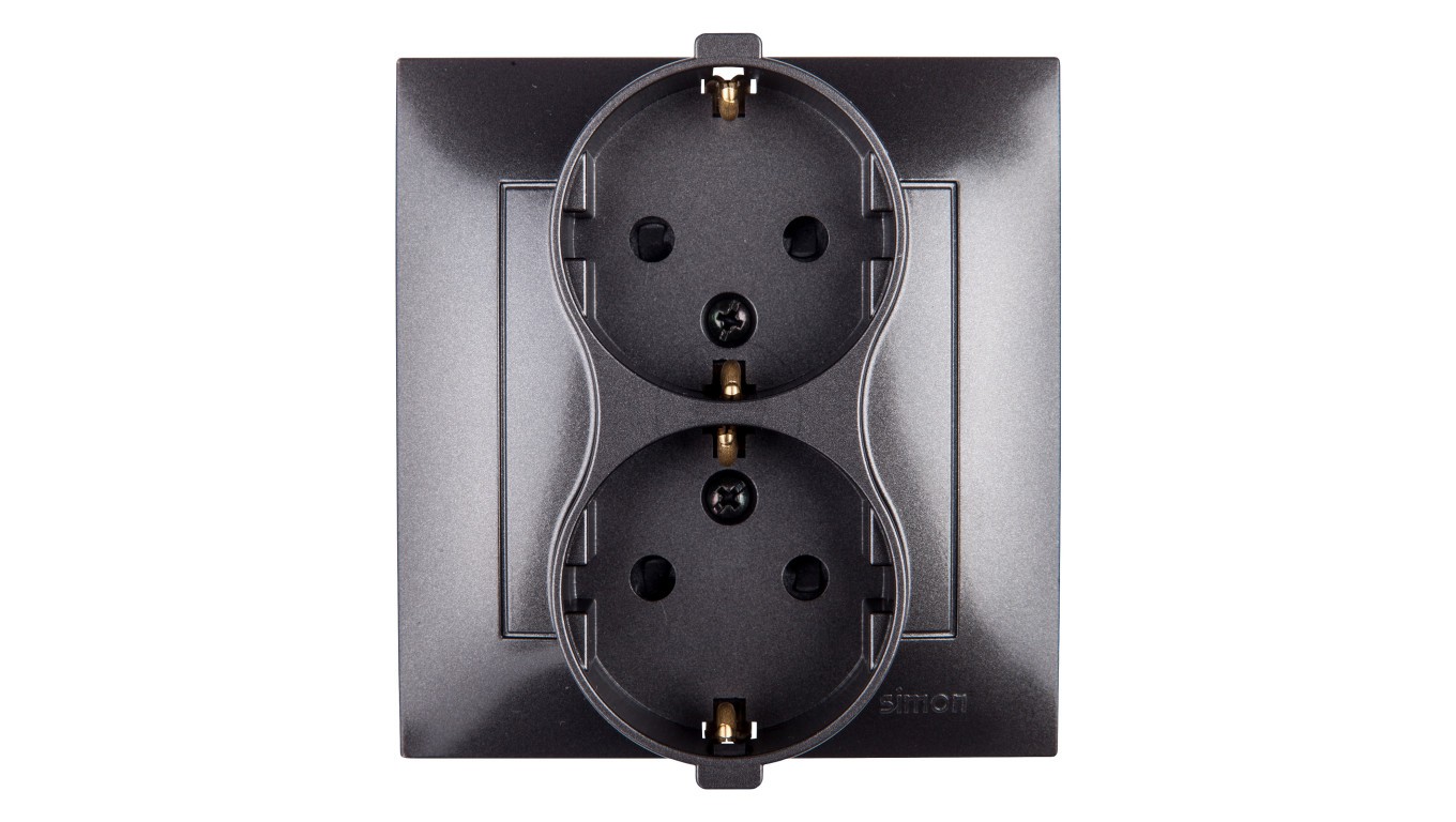 Simon 54 Gniazdo podwójne SCHUKO z/u 16A IP20 z przesłoną torów antracyt DGSz2Z/48