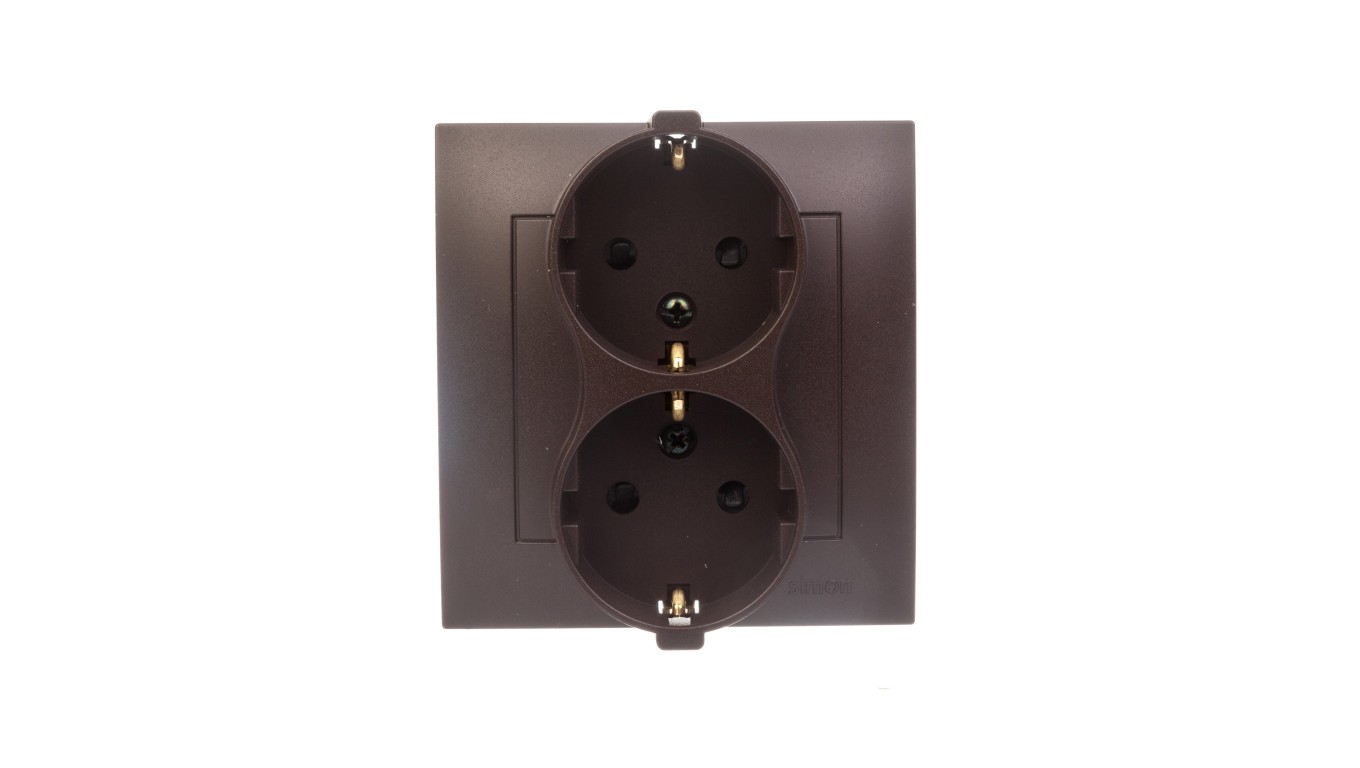 Simon 54 Gniazdo podwójne SCHUKO z/u 16A IP20 z przesłoną torów brąz mat DGSz2Z/46