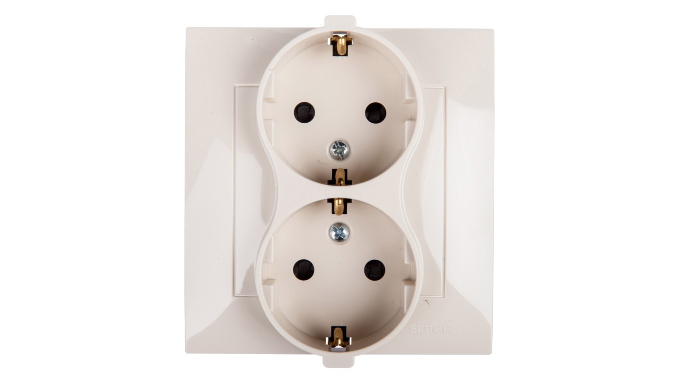 Simon 54 Gniazdo podwójne SCHUKO z/u 16A IP20 z przesłoną torów kremowe DGSz2Z/41