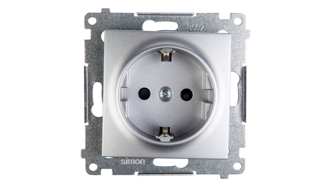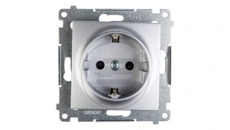Simon 54 Gniazdo pojedyncze SCHUKO z/u 16A IP20 z przesłoną torów srebrny mat DGSz1CZ.01/43